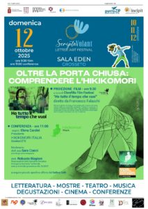 Nell’ambito della manifestazione “Scripta Volant – Festival artistico-letterario”, domenica 12 ottobre presso la sala Eden di Grosseto si terrà una mattinata dedicata all’approfondimento dell’Hikikomori nei giovani, ovvero un prolungato e grave isolamento sociale scelto volontariamente senza che vi siano altre condizioni patologiche fisiche o mentali. L’iniziativa “Oltre la porta chiusa, comprendere l’Hikikomori” inizierà alle ore 9:30 con la proiezione del cortometraggio “Ho tutto il tempo che vuoi”, diretto da Francesco Falaschi e sceneggiato dallo stesso Falaschi e da Alessio Brizzi, apprezzato docente di Storia dell’Arte. Protagonista dell’opera è Matteo, un adolescente che ha deciso di chiudersi nella sua camera e rifiutare ogni contatto con il mondo esterno. A cercare di aiutarlo sarà l’educatrice Sara, che a sua volta vive un dramma personale.