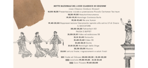 Anche quest’anno il Liceo Classico “Carducci – Ricasoli” partecipa all’evento culturale dell’antichità “XII° edizione della Notte del Liceo Classico”. L’evento si terrà venerdì 27 marzo dalle ore 18.00 alle ore 23.00 e vedrà alternarsi spettacoli e interventi dei nostri allievi. Gli studenti sono chiamati a riflettere e ad allestire performances in coerenza con il seguente tema: “Homo sum…” Il nostro tempo è attraversato da guerre, odi, violenze visibili e invisibili: ci muoviamo tra conflitti che incendiano il mondo, ma anche ferite quotidiane che cancellano il volto dell’altro, ne umiliano l’identità, dal bullismo al femminicidio alle pressioni psicologiche, fino al rischio di un’umanità smarrita nella fredda logica delle macchine e dell’intelligenza artificiale. È un tempo che ci chiede con forza: che cosa significa oggi essere uomini?